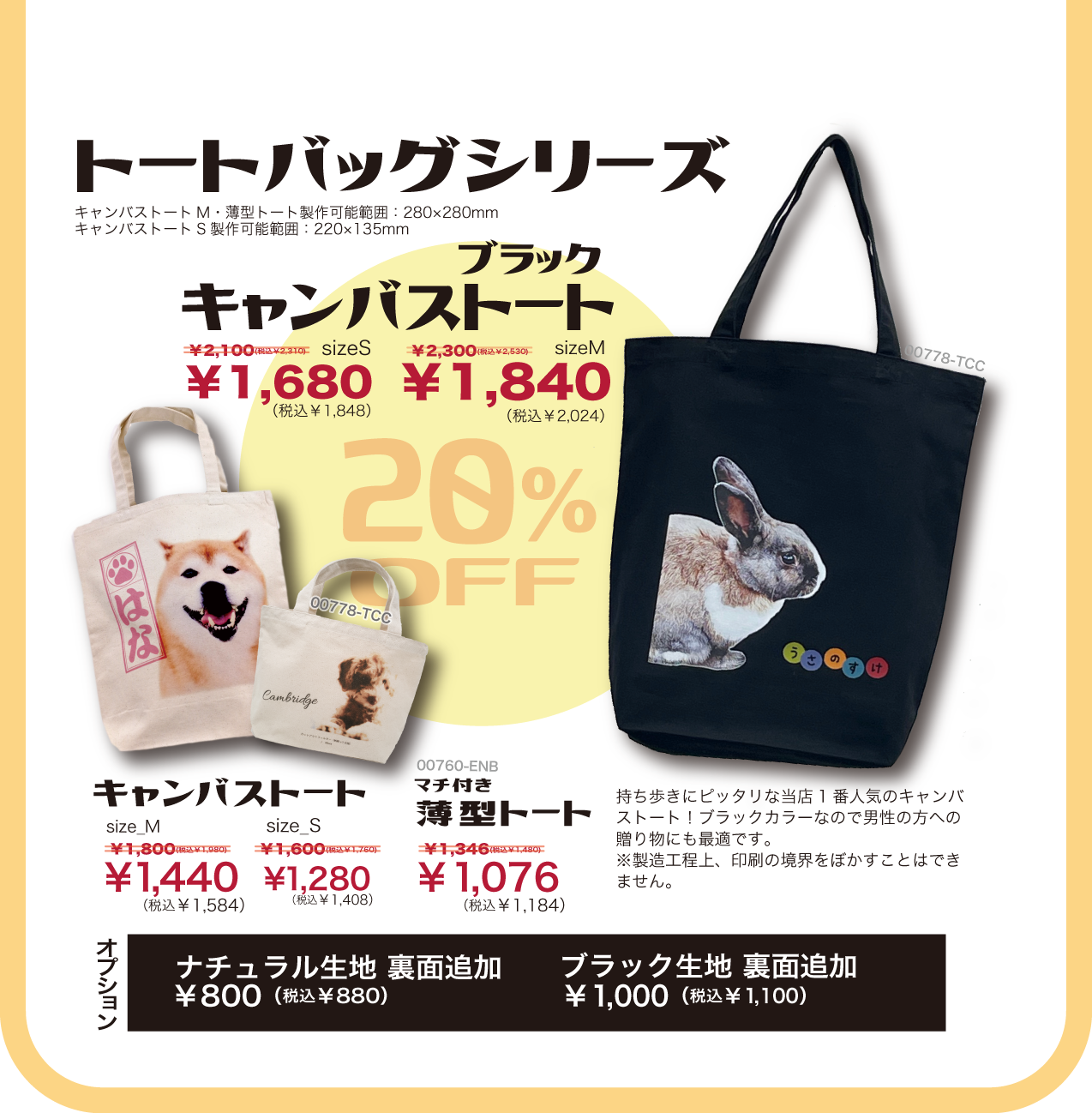 ペットのお写真を、かばん・ポーチ・インテリア雑貨にオーダーメイドでプリントします。