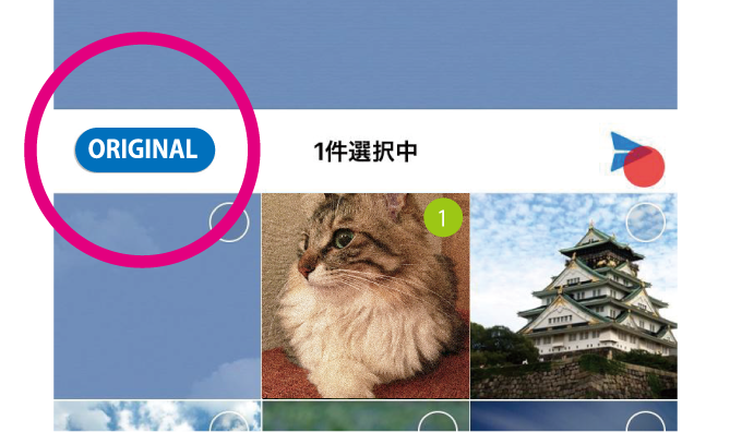 画像選択中に「ORIGINAL」ボタンが出現しますので「ON」にしてください。